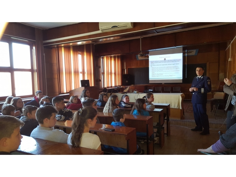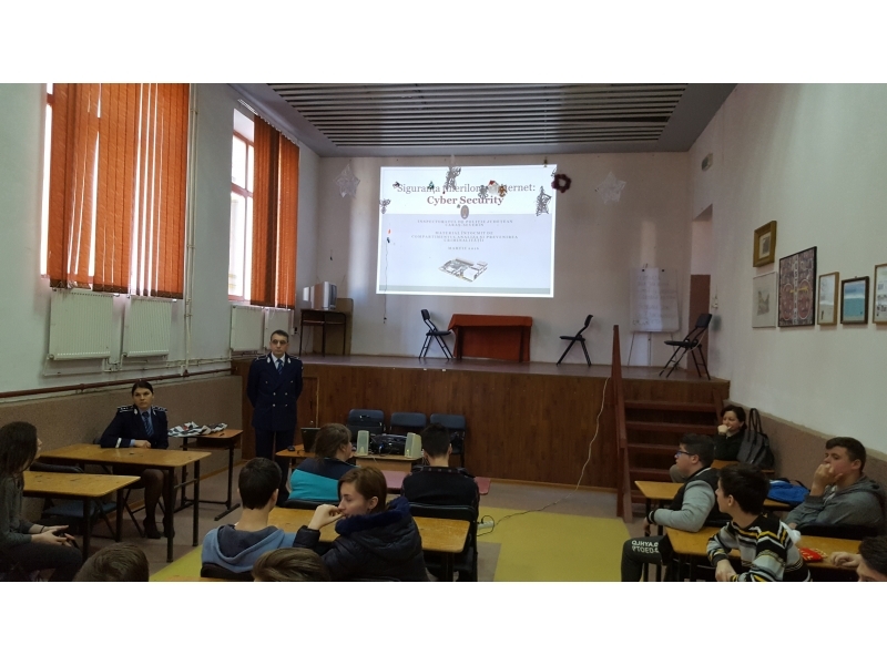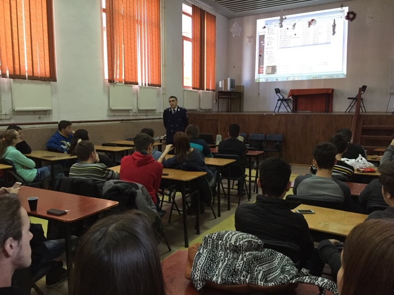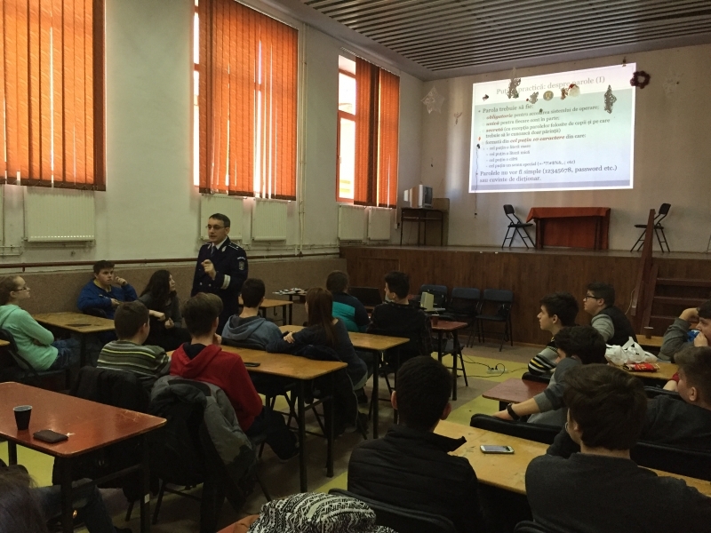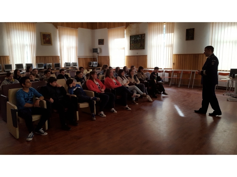 Pe parcursul săptămânii 14-18 martie 2016, poliţişti din Compartimentul de Analiză şi Prevenire a Criminalităţii din Inspectoratul de Poliţie Judeţean Caraş-Severin şi din Serviciul de Combatere a Criminalităţii Organizate Caraş-Severin au fost prezenţi în rândul elevilor de la unităţi şcolare din Reşiţa, Oraviţa şi Vărădia unde au discutat atât cu elevi de gimnaziu cât şi cu liceeni despre prevenirea criminalităţii informatice.