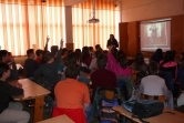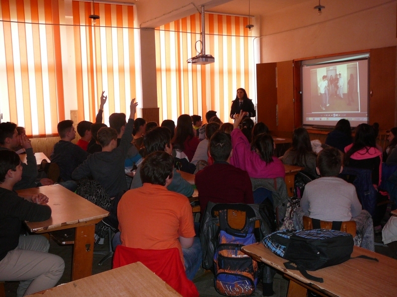 Transmiterea informaţiilor s-a realizat sub formă de expunere şi prezentare iar cei 114 elevi, 4 profesori şi 4 asistenţi sociali au vizionat imagini video educative menite să întărească veridicitatea informaţiilor transmise în principal sub forma unor recomandări preventive.