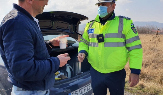 Pentru a veni în sprijinul conducătorilor auto, în cursul zilei de astăzi, aceștia au oferit șoferilor care au tranzitat centura ocolitoare a Municipiului Caransebeș, alături de obișnuitele recomandări preventive, și câte o cafea sau un ceai cald.