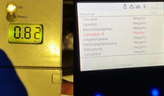 În jurul orei 05.00, un alt conducător auto de 34 de ani, a fost oprit pentru control de catre polițiști, rezultând că avea o alcoolemie de 0,82 mg/l alcool pur în aerul expirat.
