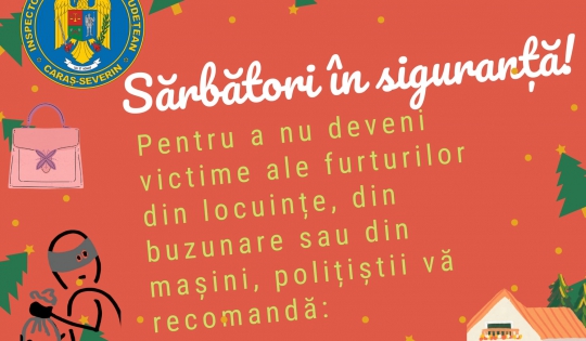 SĂRBĂTORI ÎN SIGURANȚĂ: AVEȚI GRIJĂ DE BUNURILE PERSONALE ȘI DE CASA DUMNEAVOASTRĂ!