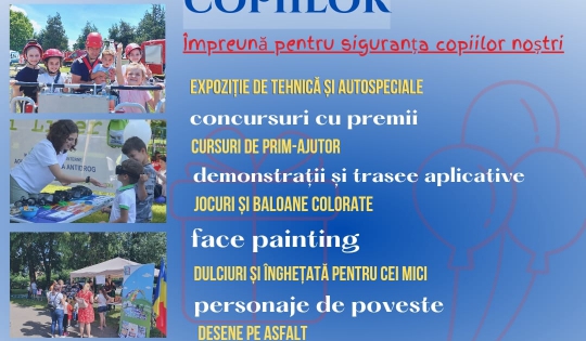 Dragi copii, pe 1 Iunie, între orele 10.00-14.00, vă invităm să sărbătorim împreună Ziua Internațională a Copilului, în cadrul evenimentului dedicat vouă, intitulat "ÎMPREUNĂ PENTRU SIGURANȚA COPIILOR NOȘTRI".