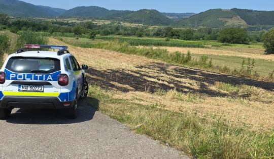 Ieri dimineață, în jurul orei 10.30, în timp ce echipajul de poliție rutieră din cadrul Biroului Drumuri Naționale și Europene patrula pe DN 6, în afara localității Bucoșnița, a observat că pe o suprafață de miriște, în proximitatea DN 6, un bărbat dăduse foc la vegetația uscată rezultată în urma recoltării culturii de cereale.